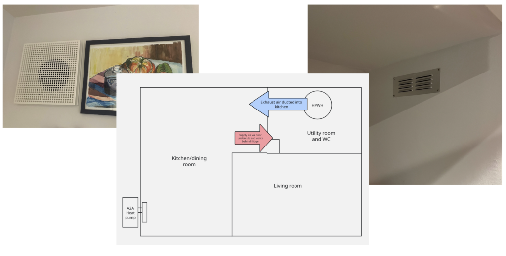 - I think if the house is not at or close to Passivhaus/EnerPHit levels of performance, and the hot water demand is also minimised (shower water heat recovery, radial microbore distribution), taking the heat from inside the house might be really annoying because you'd often end up with a house or a room that was uncomfortably cold outside of the heating season. Our house has 'heat to spare', regulated by the MVHR bypass opening or closing, for 5 or 6 months of the year, most houses don't have this.
